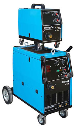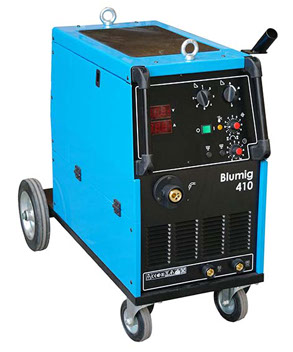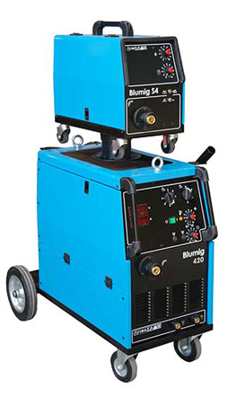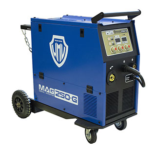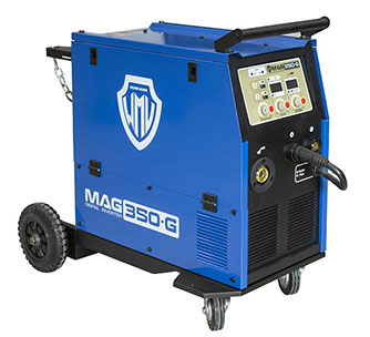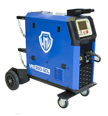 Máquina de soldar MIG semi automática de electrodo continuo para aplicaciones semi industriales, monofásicas compactas con ruedas,